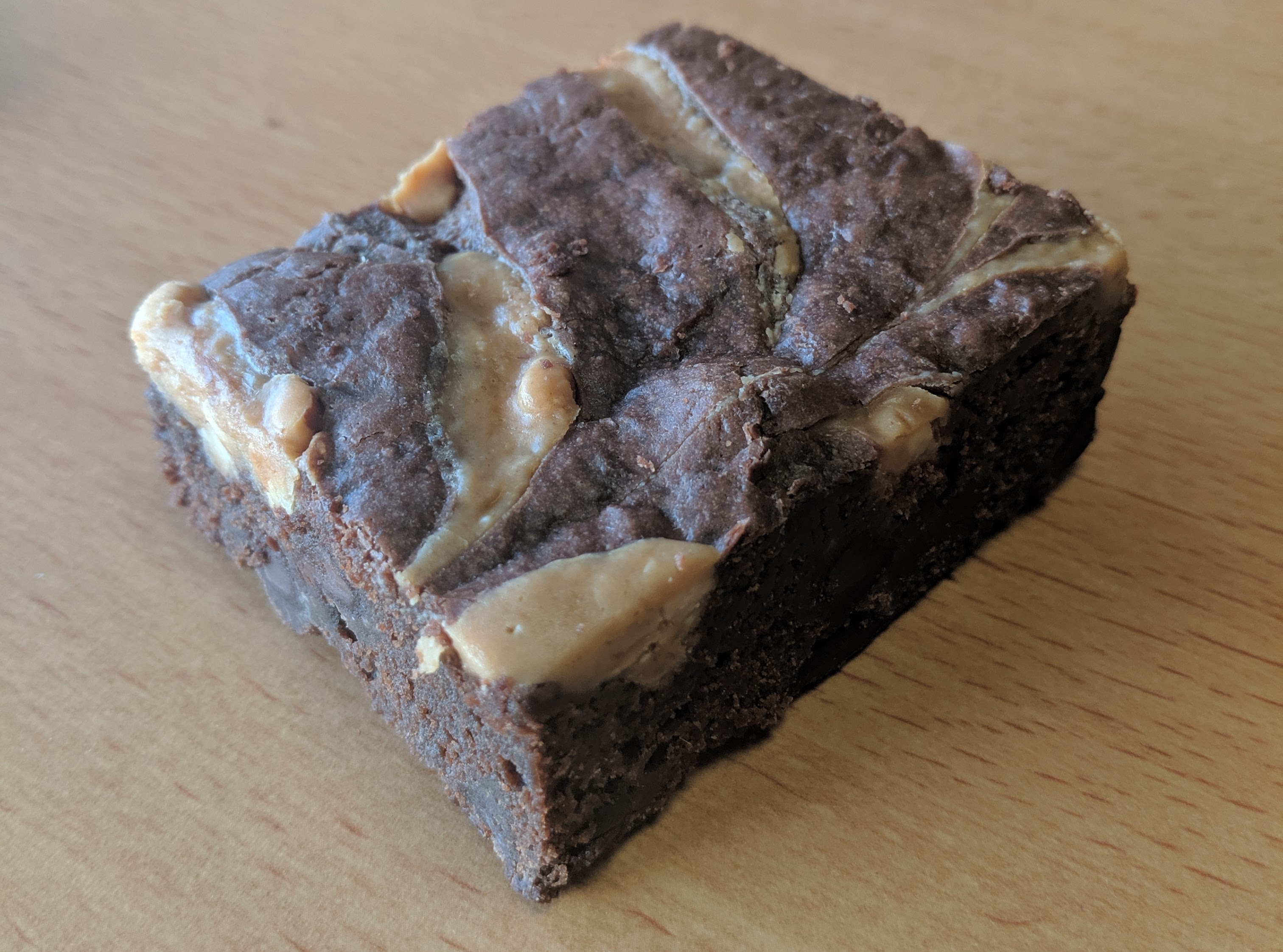 I went for the peanut butter brownie today, in part because I was intrigued how it has gone a totally different route to my last peanut butter brownie. Smooth over crunchy. It’s like a completely separate concept! Time to eat.