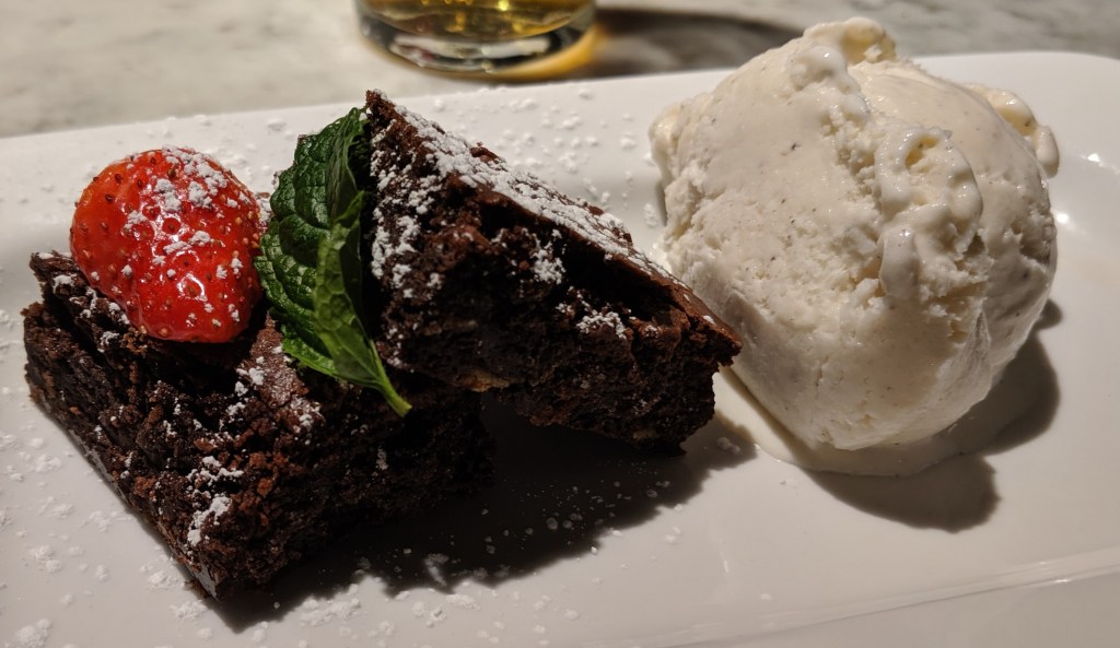 Taste: These were alright, but not actually as good as I was hoping, or expecting? Powder sugar on top of the brownies helped make them a bit sweeter. The strawberry and mint seem like a bit of an obligatory addition. The vanilla gelato that came with it was very nice, though. 6/10