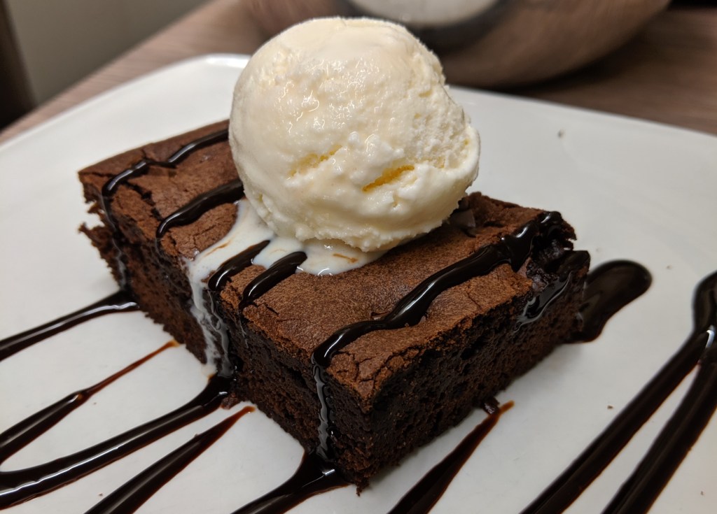 Presentation: I know it’s a common trick, but I like the sauce drizzle and the icecream scoop on top. The brownie doesn’t look exactly stunning, but eh, it’s alright all told. 3/5