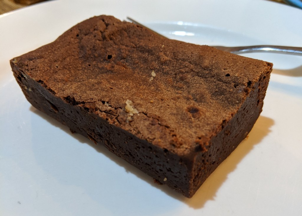 Texture: The common ‘problem’ of being amazing towards what was clearly the centre of the whole brownie, and then drier and less soft towards the edges. The gradient was lesser than in some other brownies, though, and it was overall satisfyingly moist and fudgey. 8/10