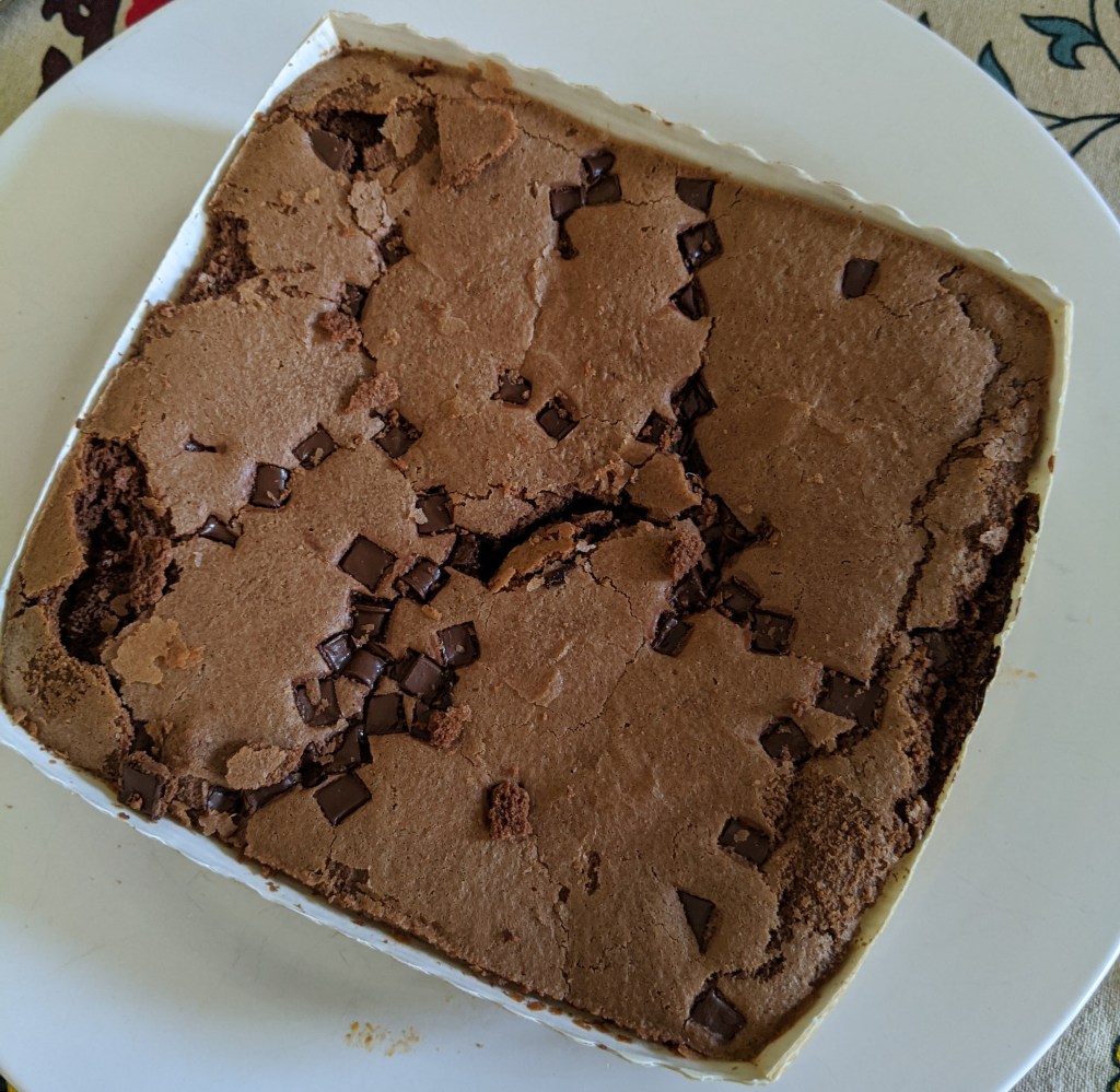 Texture: The balance of sauce and brownie wasn’t all that, a little off somehow, and the top of the brownie (possibly as a result of the ovening) was overly crispy and crunchy, which detracted from the whole thing. And since the packaging literally told me to oven-heat it (I followed said instructions exactly) I feel justified in laying the blame for that at its door. 5/10